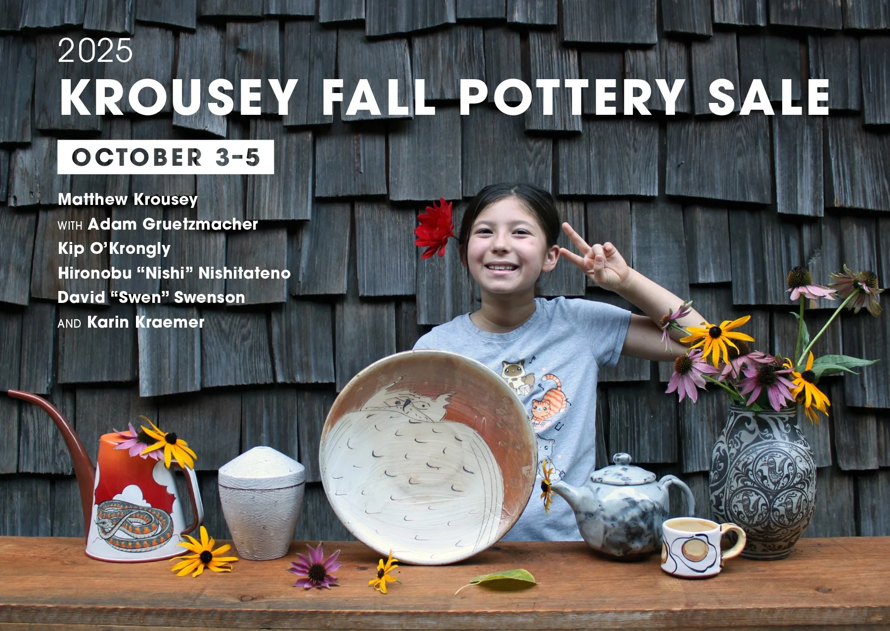What: We are so excited to welcome you to our home and catch up on the last year. Join us at our home in beautiful rural Minnesota and discover a wide array of pottery for purchase. We’ll have thousands of great pots by Host Potter Matt Krousey and Guest Potters Adam Gruetzmacher, Hironobu Nishitateno, Kip O’Krongly, Karin Kraemer, and David Swenson. Fill your new mug with beer or coffee and your new plate with sweet and savory snacks. Then have a seat by the fire for lively conversation. If you would like a tour of the studio and new kiln Matt is always available. We hope your Fall is going well and can't wait to see you in October!